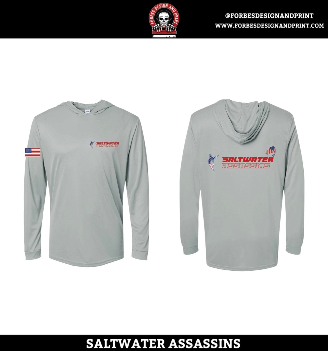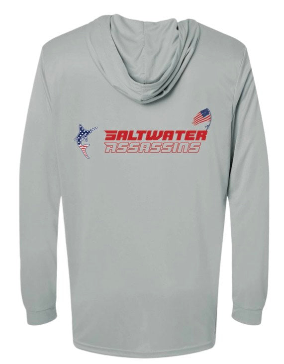 Saltwater Assassins Grey Tournament Performance Hooded Long-Sleeve